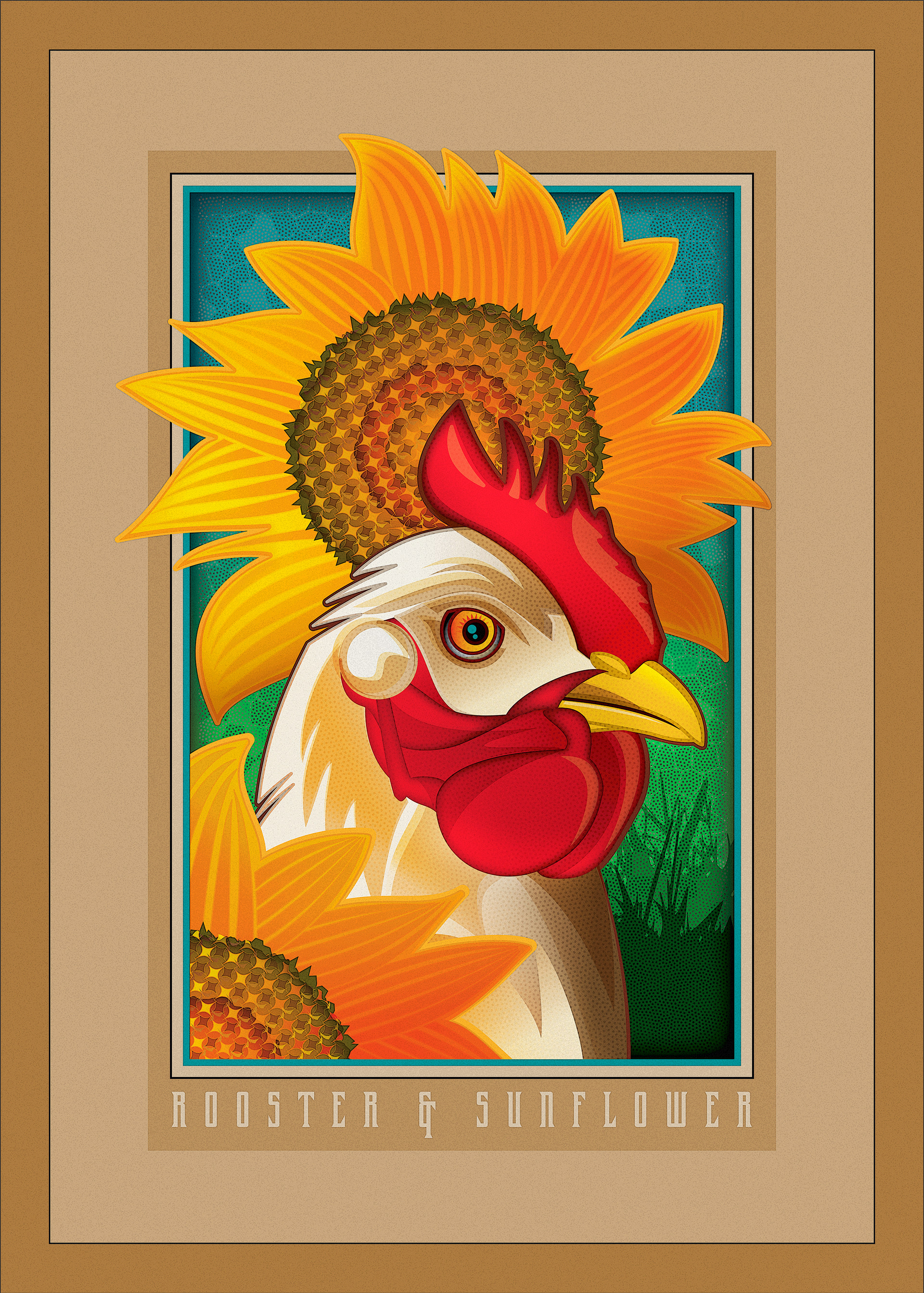 Rooster with Sunflowers